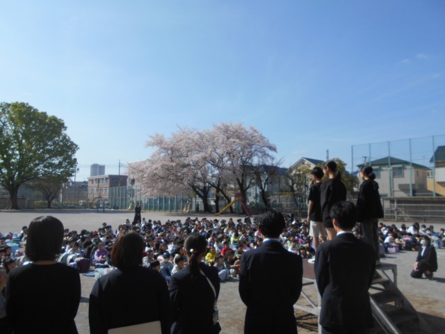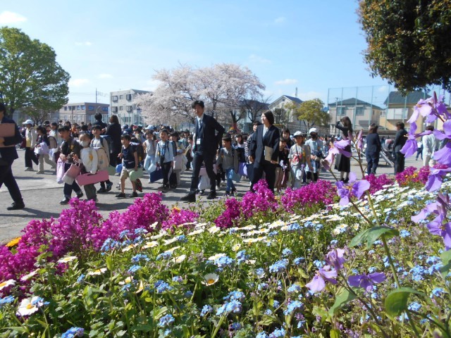 本当に良いお天気になりました。桜も花壇の花々も、子供たちの心もみんなうれしそうです。期待も不安もある新しいクラスや友達、そして先生。発表が終わると、どの子もよい顔になっていました。児童代表の6年生の言葉もとても立派でした。これから1年、お互いによろしくお願いします!