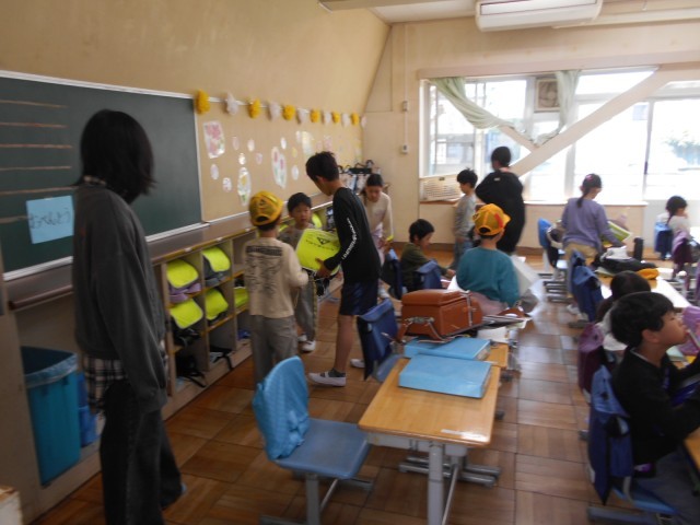 朝、登校してからの支度や準備、トイレの案内など6年生が大活躍。まだ学校生活に慣れていない1年生にお兄さん、お姉さんたちがやさしくお世話をしてくれています。