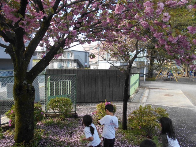 朝、雨上がりで空気が澄んでいました。朝から元気に遊んでいます。桜の花びらが風で舞い、それを必死に集める子たちもいました。この時期は丹沢、そしてまだ白い富士山の頭が少しだけ、3階からは見ることができますね。