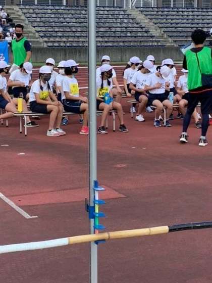 開会式が終わり、いよいよ競技が始まります。走り高跳びに、本校の子供たちがいました。座席では、緊張しながらも、張り切っている子供たちがいました。