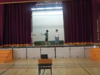 今日の児童集会は集会委員による『ゲーム集会』でした。緞帳の間を『体操着』『防災...