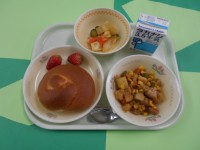ミルクパン 鶏肉とコーンの揚げ煮 カレーピクルス いちご