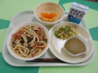 山菜わかめうどん そくせき漬け風 米粉の若草むしパン 清見オレンジ