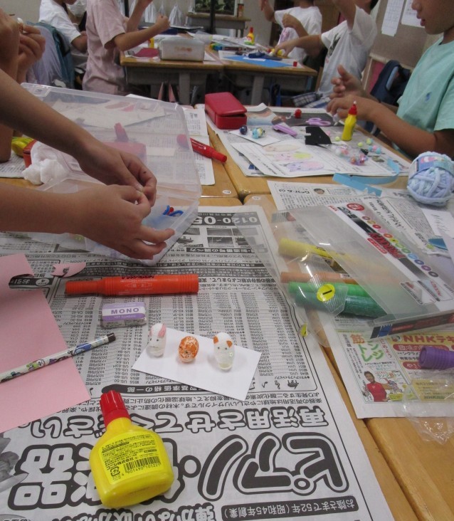 みんなで育てた蚕のまゆを使って、まゆ人形を作りました。自分で考えた設計図をもとに、楽しく制作しました。