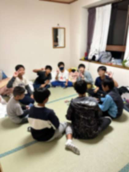 ナイトハイクが突然のにわか雨で中止となり、少しのんびり室内で過ごせるように予定を変更しました。仲間と存分に遊べるのも、宿泊行事ならではです。
