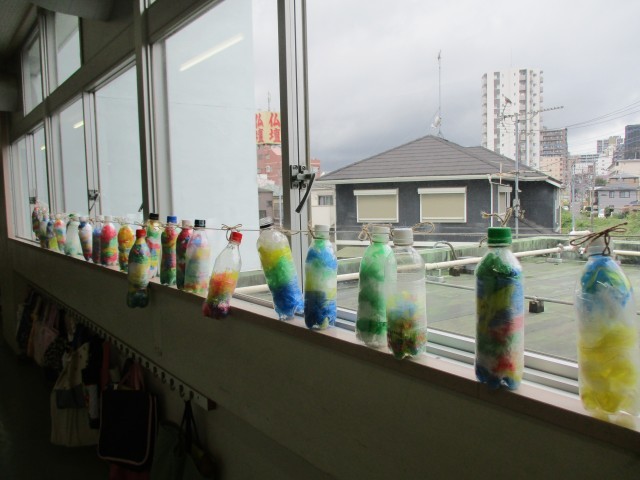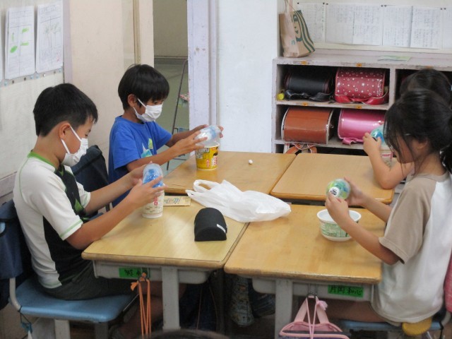 1学期育ててきた、かいこの糸取りを行いました。糸が途中で切れてしまい、うまくペットボトルに巻き付かず、、、でも粘り強く取り組みました!!