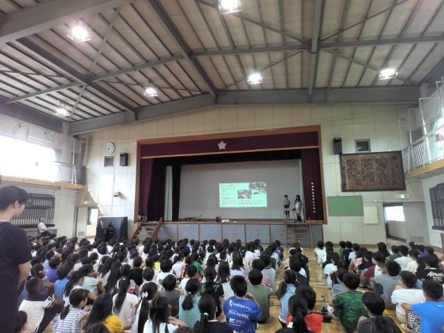 その後、夏休みに6年生の代表児童が参加したフォーラムでの発表を全校児童の前でしてくれました。