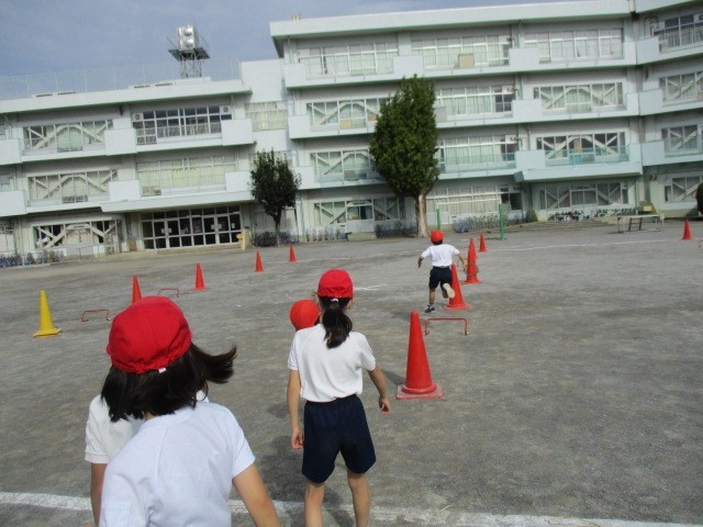 体育「走の運動遊び」ではリレーに取り組みました。障害物の置き方、走順、速く走るための作戦など、子供たちが自分で考え工夫する姿が見られました。また、結果を受けてさらにより楽しくするために、改善しようとする姿がとても立派です。