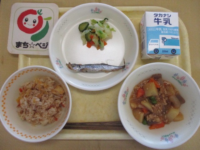 キムタクごはんは人気なメニューの1つです。今日のキムタクごはんには町田産のたくあんが入っています。