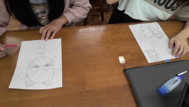漫画イラストクラブでは、友達と教えあいながら、漫画やイラストを描いています。