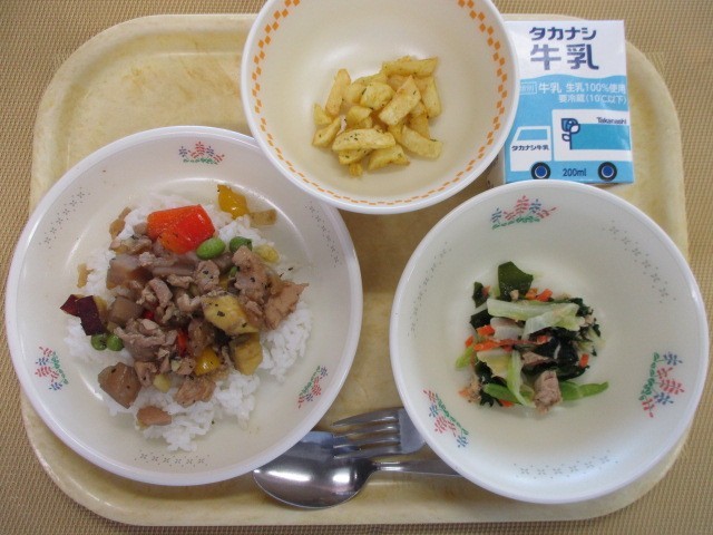 今日はFC町田ゼルビア応援給食です。選手が実際に食べているメニューを給食用にアレンジしています。