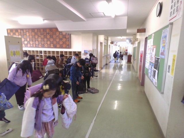 「明けましておめでとうございます」、「上履きが小さくなったよ」など、元気よく子どもたちは登校してきました。