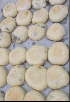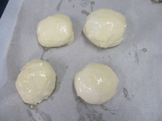 長野県の郷土料理のおやきです。おやきには野沢菜を使いました。調理員さんが一つひとつ包んでくれました。