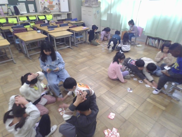 お正月遊びの一つ、「かるたあそび」を楽しみました。ルールを守って楽しく遊ぶことができました。直接触れたり顔を見合わせたりして楽しめるアナログな遊びは、世代を超えて遊ぶことができ、コミュニケーションが生まれやすく魅力がたくさん詰まっています。ぜひ、お家でも遊んでみてください。
