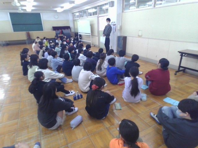 今年度最後のたてわり活動は5年生が計画を立て進行します。今日は、5年生の新班長と副班長、6年生の班長と副班長が集まり、引き継ぎ式を行いました。6年生はこれまで使ってきたたてわりノートを5年生に見せながら、計画の仕方や工夫したこと、気をつけたところなどを伝えました。分厚く、たくさん書き込まれたたてわりノートはこれまで頑張ってきた6年生の思いがぎゅっと詰め込まれています。その思いをしっかり受け止めた5年生。「わからないことがあったらいつでも聞きに来てね。」と6年生。たてわり活動のバトンが渡された瞬間でした。