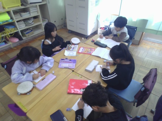 名前には、まとめていう名前と一つ一つの名前があることを学習しました。学習を生かして、お店屋さんごっこに挑戦です。グループごとに、何屋さんにするか決め商品を作りました。いくらにしようか盛り上がりました。