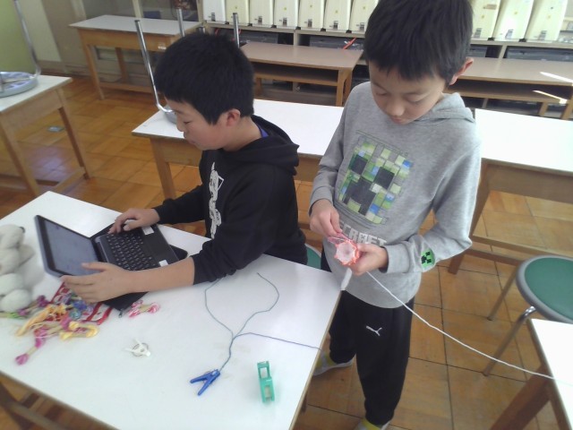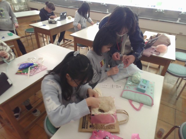 今日は、編み物に挑戦しました。指編みやリリー、鍵編みなど自分で選んだ方法で友達と楽しく活動しました。自然と教え合いができる雰囲気がとても素敵です。