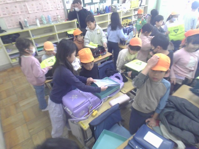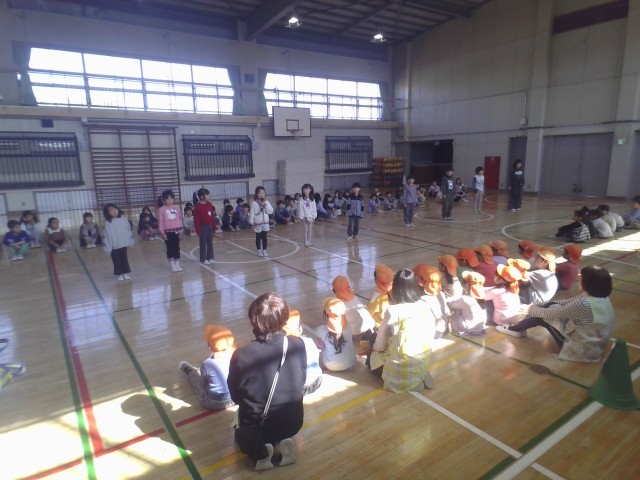 金森保育園、こうりん保育園、ひまわり幼稚園の年長さんが学校に来ました。まず、各クラスに分かれ授業の様子を見てもらいました。元気に音読したり手を挙げて発表したりするかっこいい姿を見せることができました。次に、荷物の入ったランドセルを背負わせてあげました。「重い!」と感じた子には「だんだん慣れるから大丈夫だよ。」と、「軽い!」と感じた子には「他にもクロムブックや手提げがあるからね。」など、優しく声をかけていました。最後に、体育館に集合しゲームを楽しんだり歌と手紙のプレゼントをしたりしました。