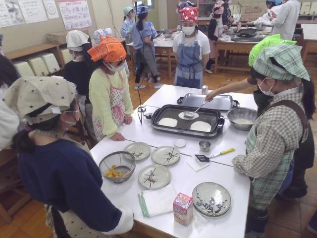 今年度最後のクラブでは、クレープを作りました。トッピングを楽しみながら時間の中で手際よく作ることができ、子供たちからも好評でした。ホットケーキミックス150グラムに対し水200ccで作りました。お家でもぜひ試してみてください。