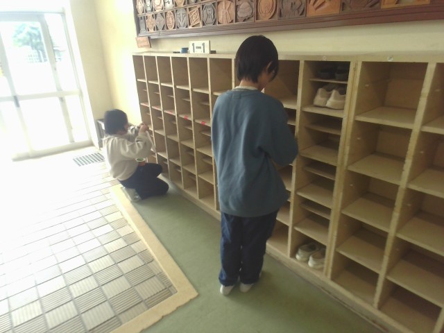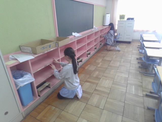 6年生が入学式に向けて準備を行いました。テキパキと動く姿がとても素敵で、あっという間に1年生の教室や廊下、受付が出来上がりました。