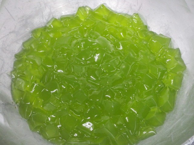 今日は桃ゼリー、マスカットゼリー、パイナップルを使ったゼリーポンチです。春らしい色合いを意識して作ってみました。