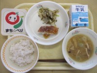今日は好きな給食アンケートで第2位のカレーライスです。給食のカレーはルウから手作りしています。また、玉ねぎを甘みが出るまでよく炒めたり、鶏がらでとったスープで肉や野菜をじっくり煮込んだり、たくさんのスパイスや調味料を合わせたりと、おいしく作るための工夫がたくさんあります。