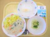 【献立】 牛乳 ターメリックライスホワイトソースかけ グリーンサラダ なし 【...