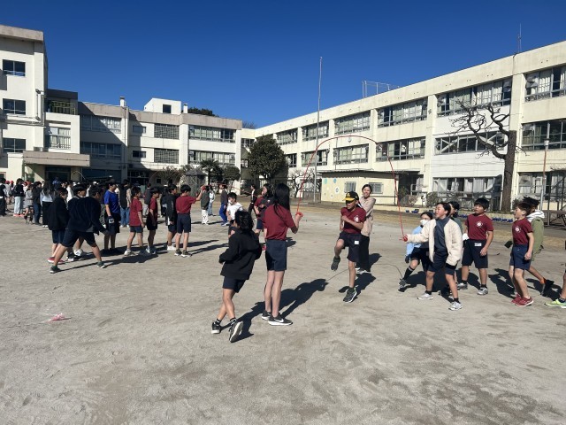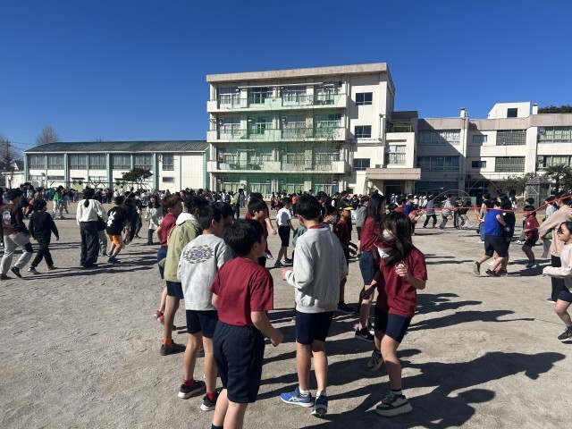 今日から始まった長なわ。最初の記録を計測しました。何回、記録を伸ばせるか楽しみです。