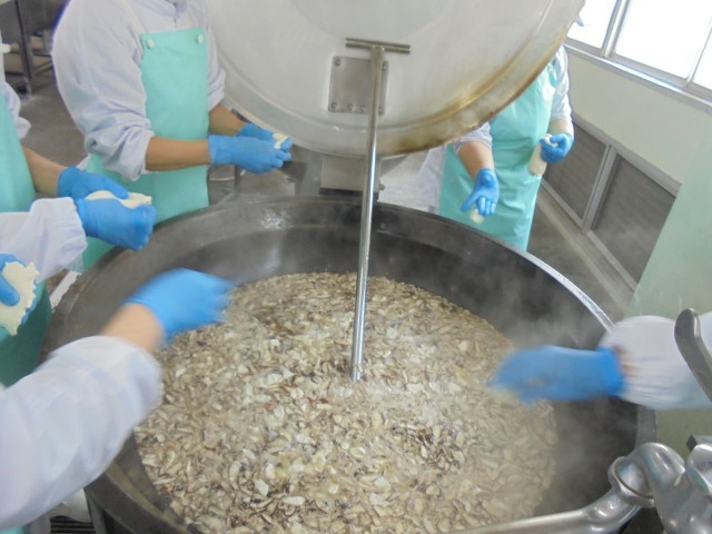 調理員さんが釜の周りから1つ1つちぎって作ったすいとんです。