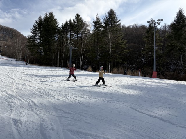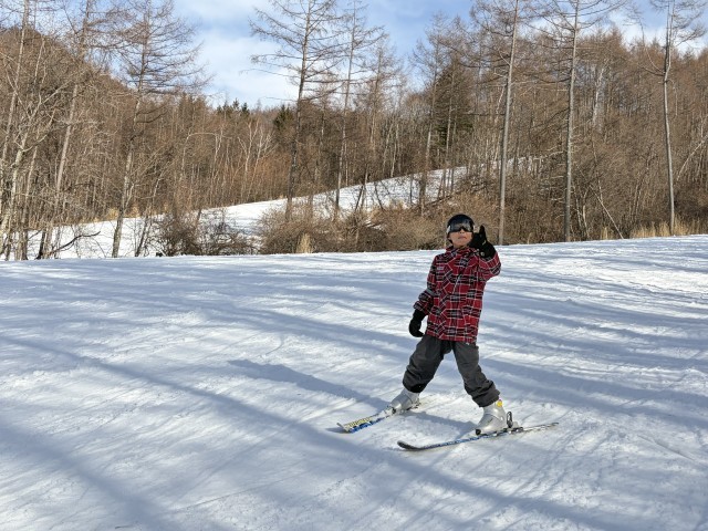 経験者はすぐにリフトに。経験の浅い子も何時間かするとリフトへ。余裕のポーズも