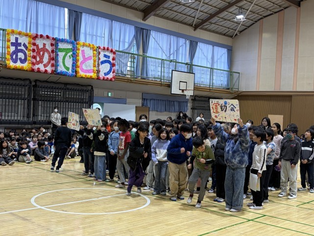 3年生は6年生のすごいところ。4年生はお話風に感謝して、5年生は6年生と長なわ対決。