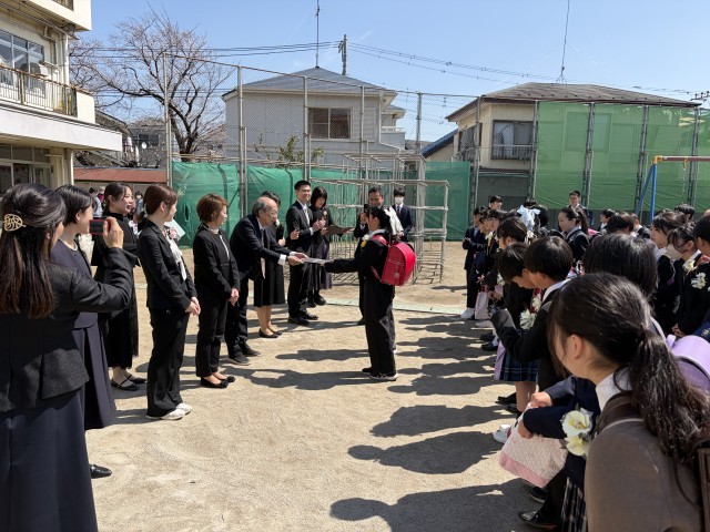 最後のランドセル姿。先生方にも感謝のメッセージを渡しました。