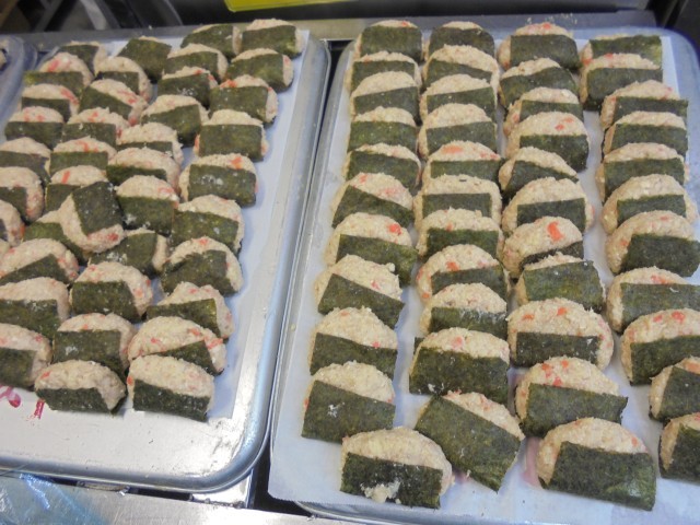 鶏ひき肉にじゃがいもやれんこんなどをみじん切りにしてよく混ぜてのりを付けて揚げたものです。
