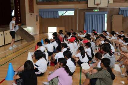 生は、トラック1周(110m)を走ります。今日は、オリエンテーションをしました。
