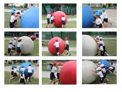 どんどん進め大玉ころがし の練習です。