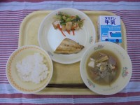 牛乳 スパゲティ豆入りミートソース ブロッコリーのサラダ ガトーショコラ