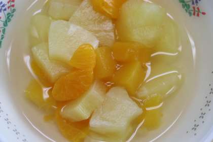 牛乳 塩焼きそば おからとポテトのチーズ焼き フルーツポンチ