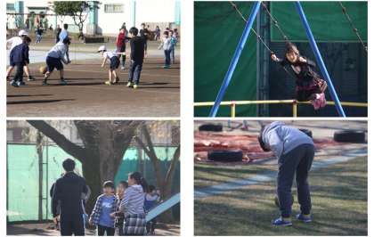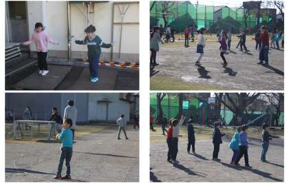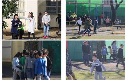 冬休みがおわり、久しぶりに校庭で、元気いっぱい友達をあそんでいます。
