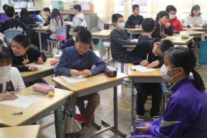 6年生が中学生に将来の夢、中学校生活、職場体験のことなどをインタビューしました。中学生は自分の考えをしっかりもっていてすばらしかったです。6年生は「自分に向き合おう」というキャリア教育を学んで折り大変勉強になりました。