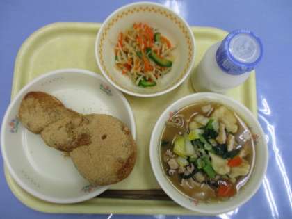 牛乳 きなこ揚げパン まちだすいとん 切干だいこんサラダ