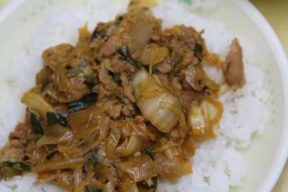 人気の「キムチ丼」を作ります。キムチの唐辛子は血行をよくし、寒い時期には体が温まります。