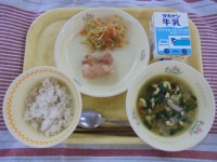 ごはん バジルチキン レモン和え ミネストローネ 牛乳今日は、バジルの香りが食欲...