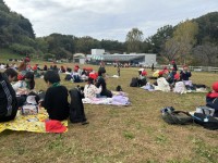 中央防波堤埋立地です。広場でゴミを減らすぞーと大きな声で宣言しました。