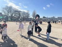 生活科で作った凧。寒風の中、元気に走り回っています。