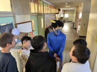 昨日の児童集会で募金を呼びかけました。ペットボトルキャップも可能。代表委員が活躍...