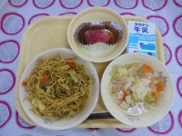カレー焼きそば 白菜スープ 焼きりんご 牛乳今日は旬のりんごを使った「焼きりんご...
