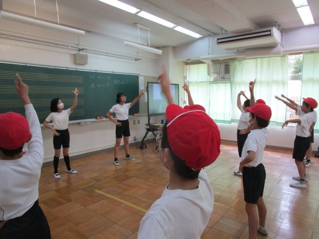 9月22日(月)5・6年生は、運動会(表現)の練習に取り組みました。教室や体育館など4か所に分かれて、子供たちが自分たちで考えた振り付けを、ダンスリーダーが中心になって練習をしました。「さすが上級生です!」自分たちの力で頑張ろうとする意気込みを感じました。校庭では一人一人の場所を確認・位置取りをして、実際動いてみました。これからどんどん上手になっていくのでしょうね。上級生の演技が今から楽しみです。