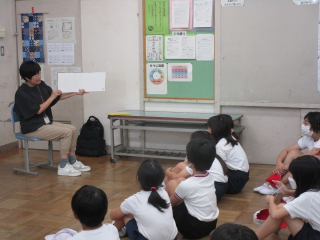 朝の時間に、PTAスイミーの会の方による「絵本の読み聞かせ」がありました。今日の絵本は、50年前に刊行されたアメリカの絵本『にぐるま ひいて』、100年前に刊行されたイギリスの『かしこい ビル』の2冊です。どちらの絵本も歴史があり、芸術的に洗練されています。1ページ1ページに描かれる絵がとても素敵です。穏やかで優しい時間が流れ、心が温かくほっこりした朝の時間でした。スイミーの会の皆様、いつもありがとうございます!