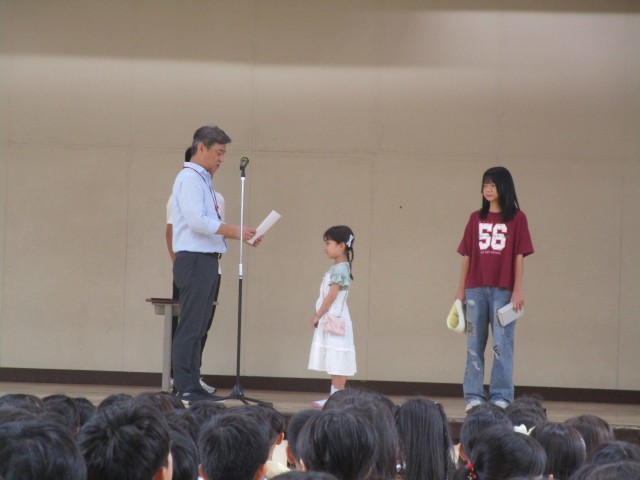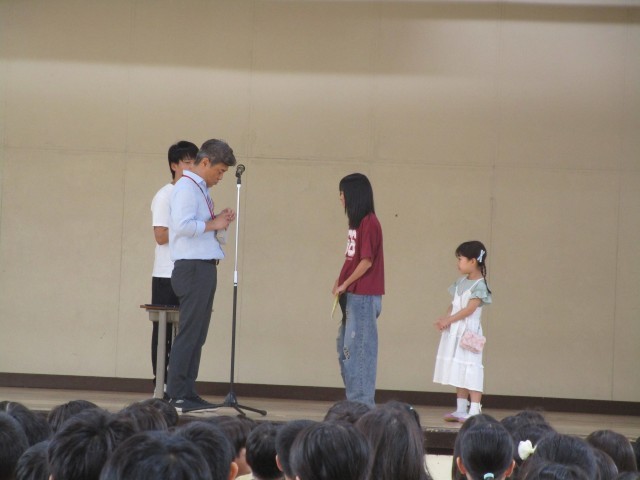 「第41回高円宮杯日本武道館書写書道大展覧会硬筆の部日本武道館賞」「第48回こども絵画コンクール最優秀賞」の表彰がありました。二人とも素晴らしい活躍です。おめでとうございます。