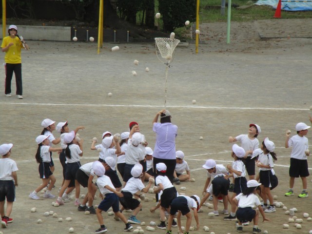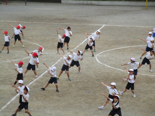 10月3日(金)運動会の練習がありました!今日は校庭に出て、まずは集団演技の隊形の確認です。先生の指示をよく聞いて移動や整列も上手にできるようになってきました。ブラザービートの曲にのり、楽しく生き生きと一生懸命な姿が、とっても印象的です。その後、玉入れの練習も行いました。入場・競技・退場の一連の練習も上手にできました。どんどん成長している姿が微笑ましいですね。